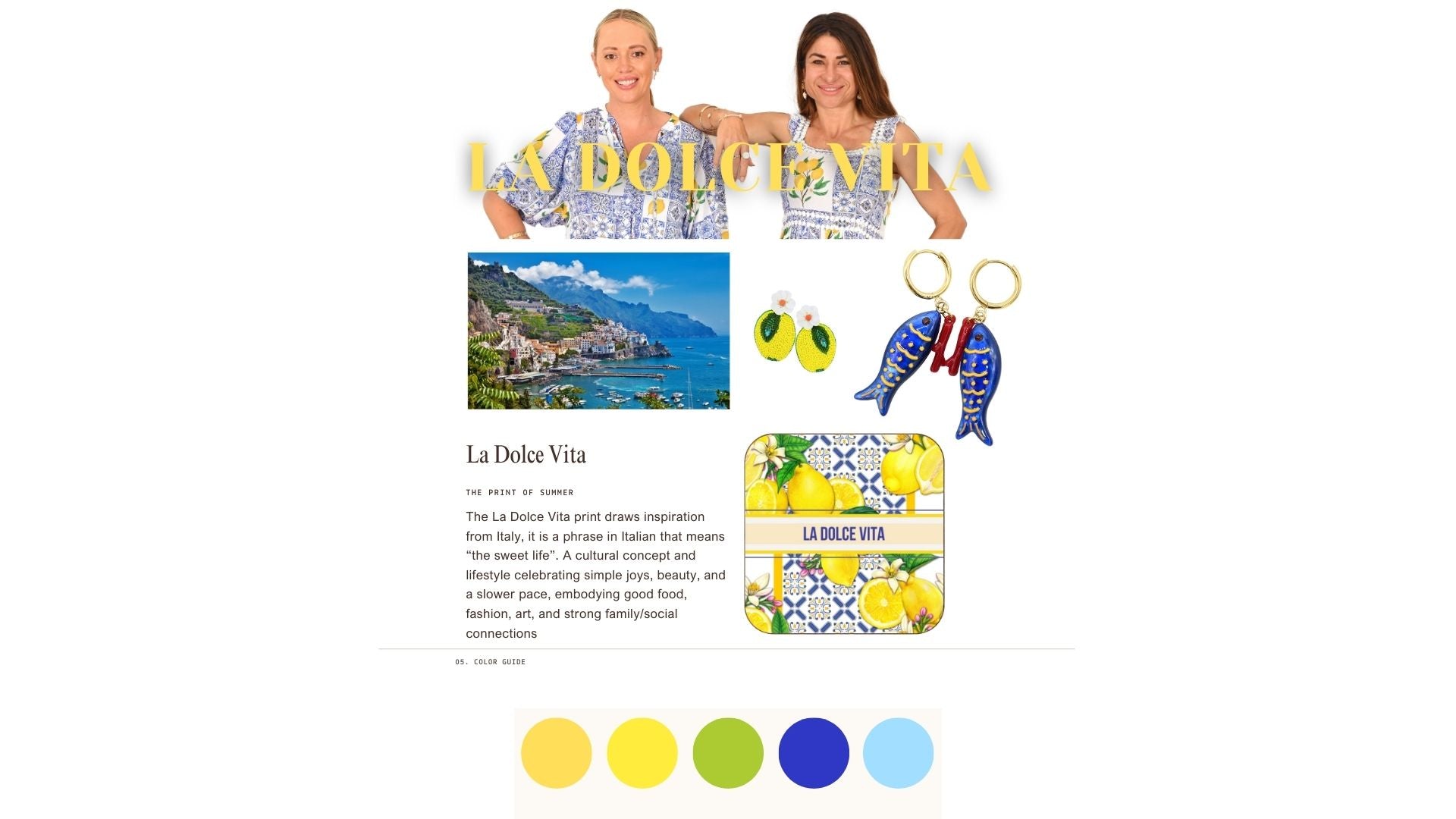 La Dolce Vita means "the sweet life" it is an Italian phrase, and an iconic concept that embodies enjoying everything that life has to offer. The La Dolce Vita print and collection was inspired by this phrase. The lemons represent the vibrant, sensory symbol of the country's coastal, leisurely, and indulgent lifestyle.