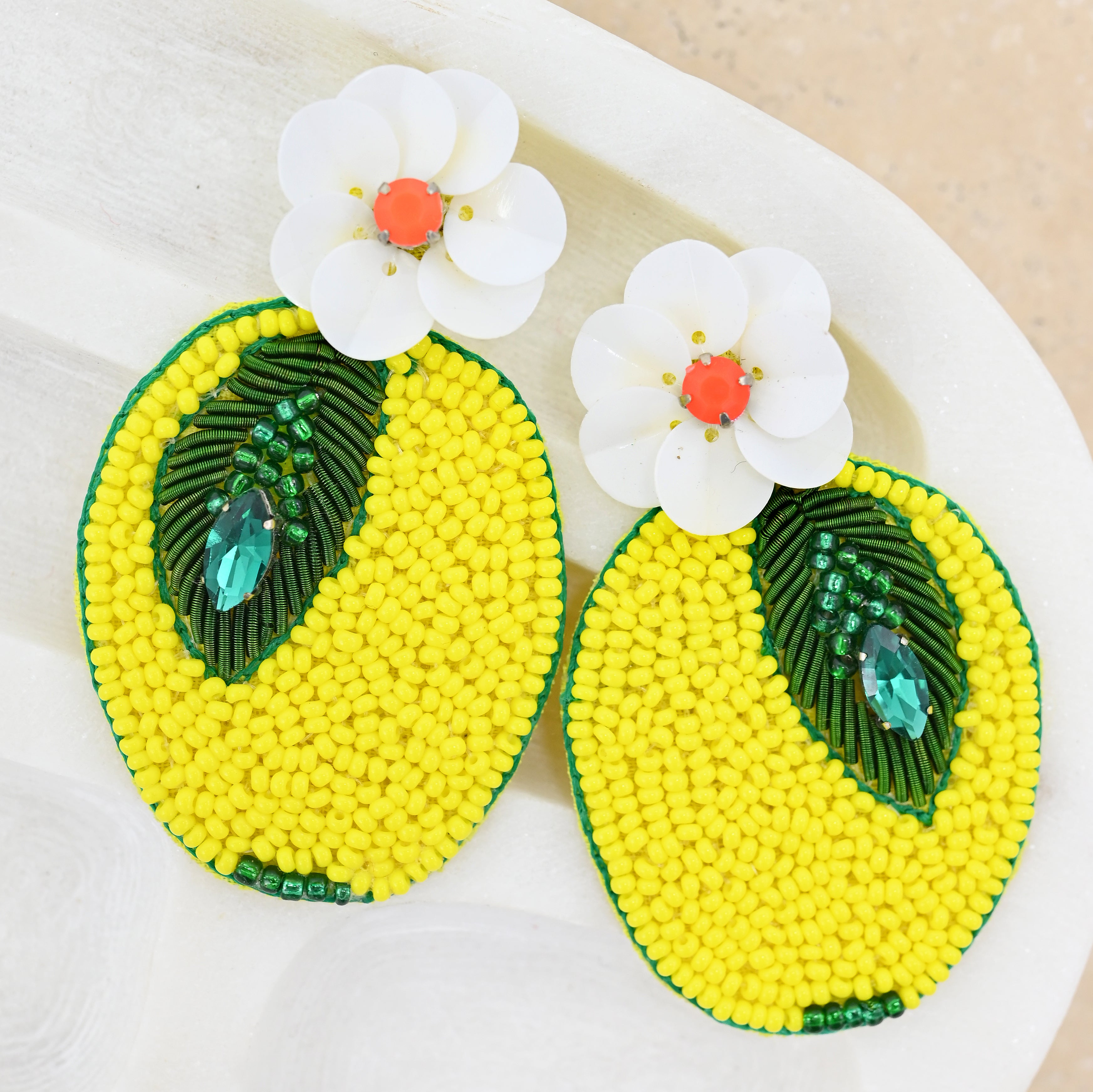 Add some colour with the yellow beaded Lemon Earrings.