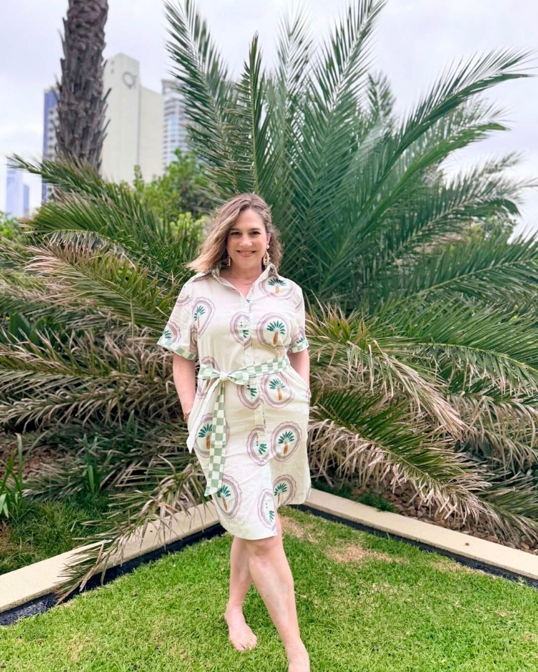 The Noosa “Adele” Dress is an effortlessly stylish shirt dress. Featuring a relaxed fit with a classic collar, button-down front, and a removable checkered waist tie, it blends easy comfort with fresh coastal charm.